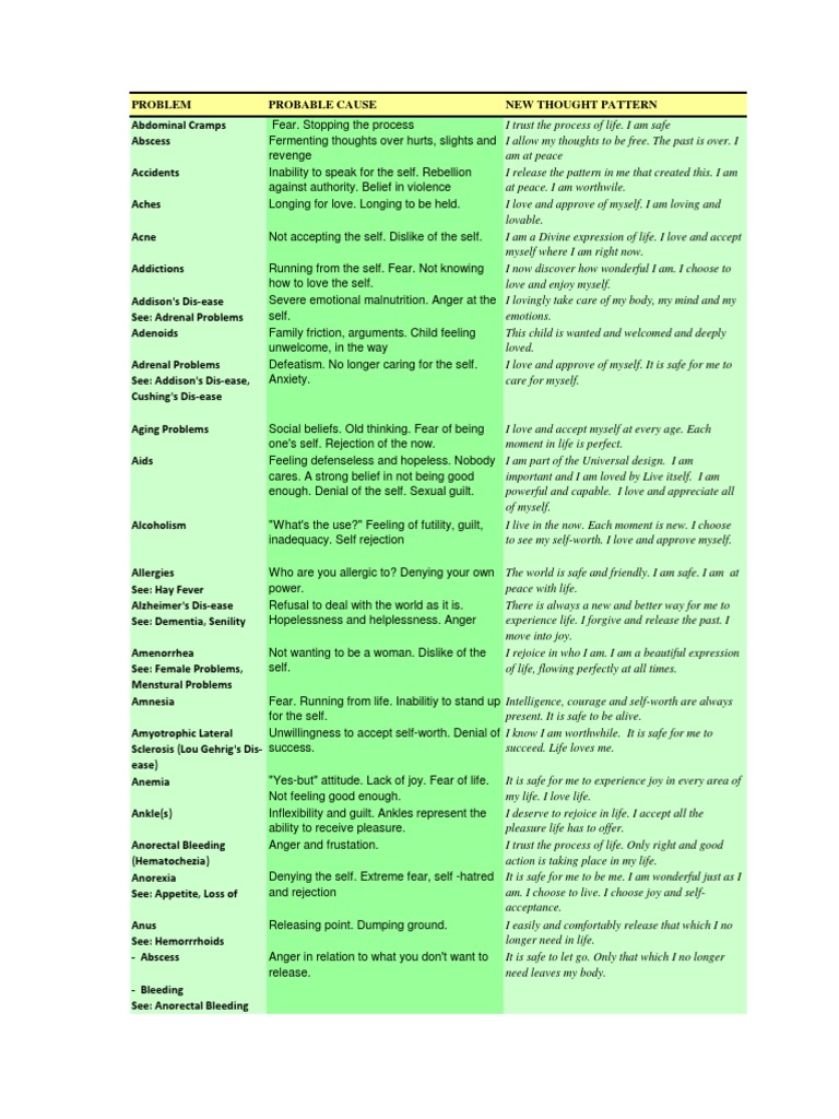 Meta Health Body Mind Chart Pdf Trinity